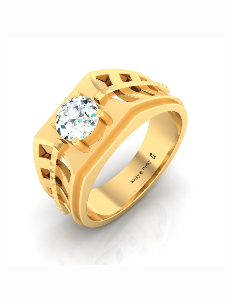 Kicky & Perky925 Sterling Silver Gold-Plated Ring For Men-Silcgmenr002