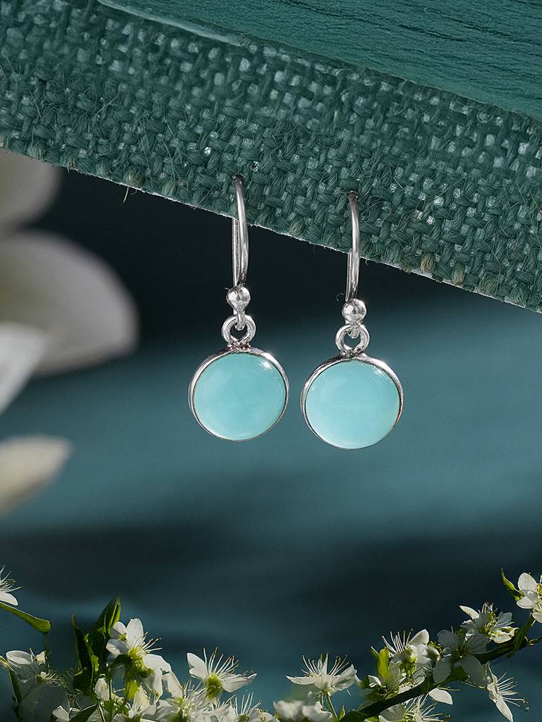 Saraf RS Jewellery925 Sterling Silver Mint Green Aqua Stone Studded Minimal Handcrafted Drop Earrings