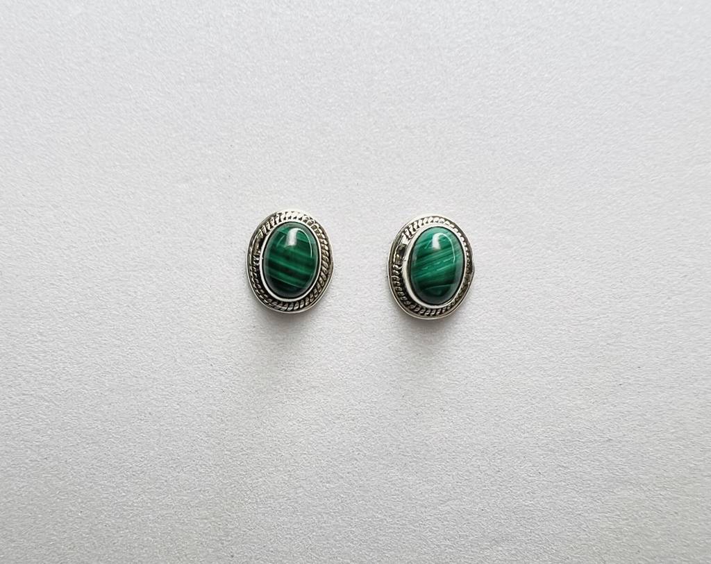 925 Sterling Silver Oval Shape Malachite Stud Earrings : ARSSE739