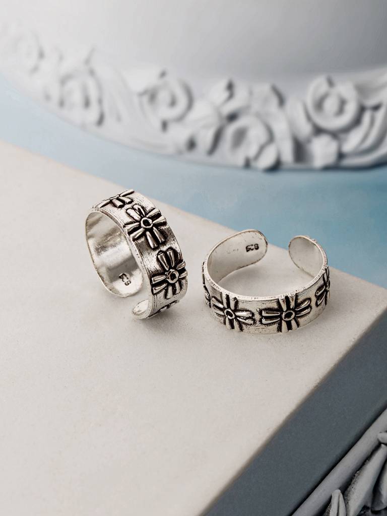 925 Sterling Silver Oxidised Embossed Leafy Toe Ring : AGTR5236