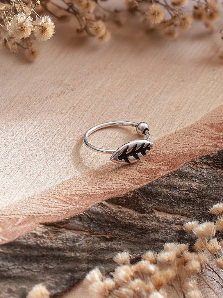Saraf RS Jewellery925 Sterling Silver Oxidised Leafy Nose Pin Studs For Women
