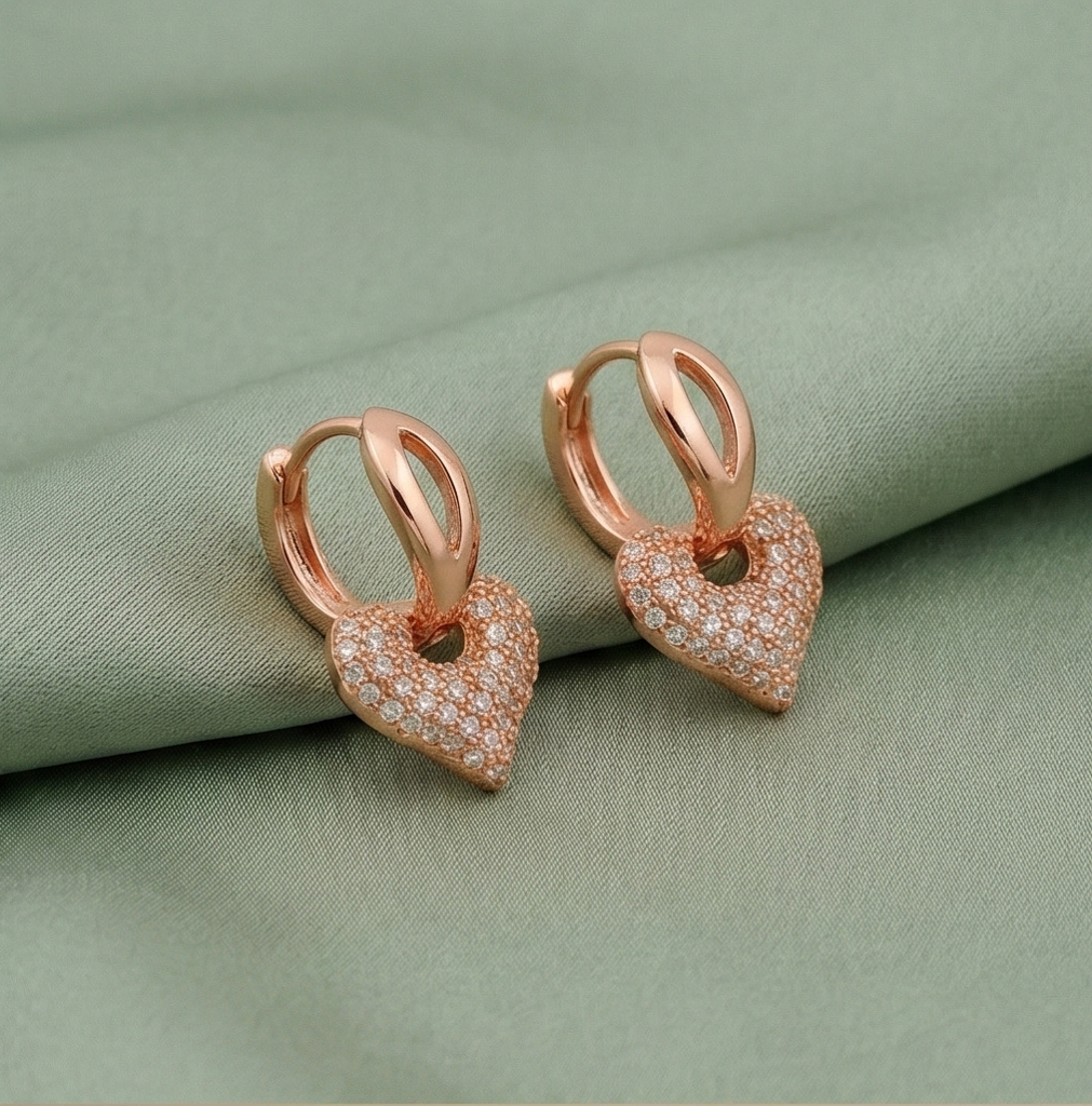 925 Sterling Silver Pave Heart Charm Huggie Earrings Rose Gold Plated Jewellery : AG06858029