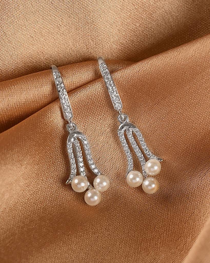 925 Sterling Silver Platinum Plated Daily Wear Kara Pearl Drop Earrings Gift For Women & Girls : CSE82