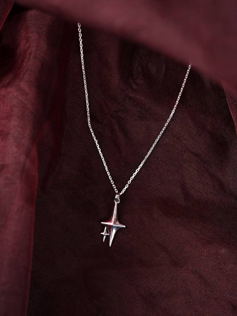 925 Sterling Silver Platinum Plated Fatin Star Pendant Chain Necklace For Women & Girls : CSP193