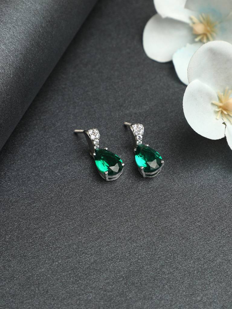 Clara92.5 Sterling Silver Rhodium Plated Swiss Zirconia Dark Green Tear Drop Earrings With Screw Back Gift For Women & Girls