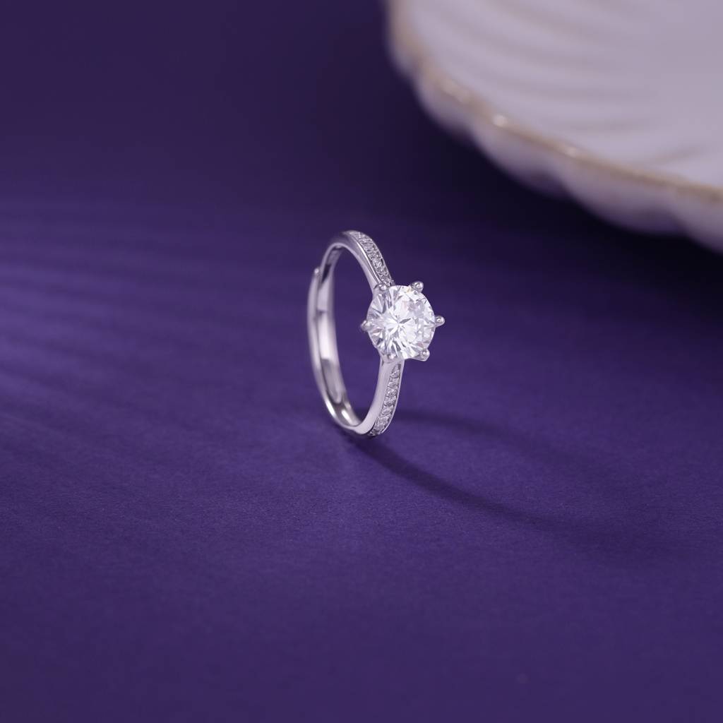 RACHIVA925 Sterling Silver Solitaire Engagement Ring With Cubic Zirconia Accents (Adjustable)