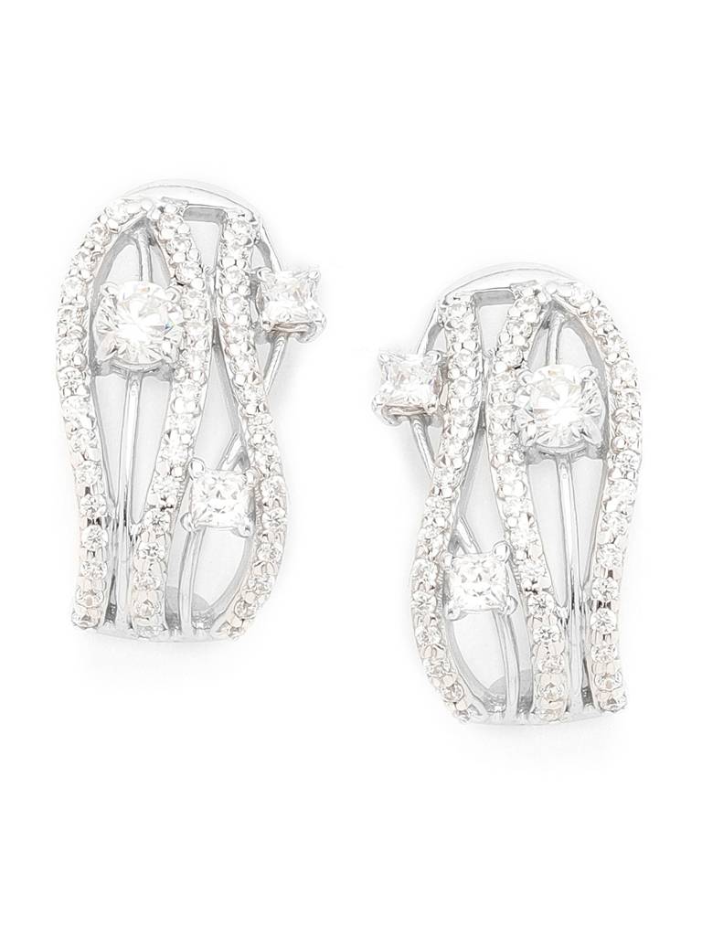925 Sterling Silver Swiss Zirconia Hoop Julie Earring With Screw Back Gift For Women And Girls : CSWZHDE17