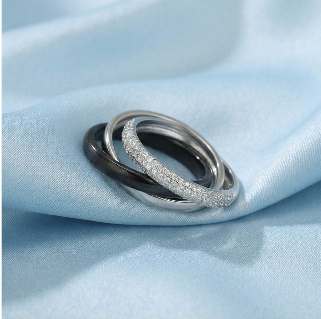 925 Sterling Silver Triple Interlocking Rolling Ring Jewellery With High Polish And Black Matte Finish For Women : AG0202-80