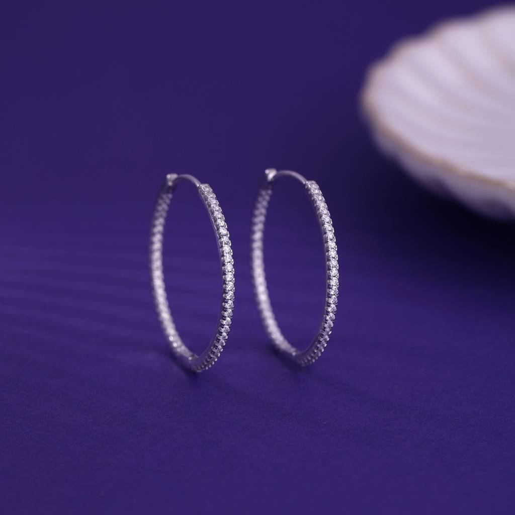 925 Sterling Silver Twilight Zircon Hoop Earrings : RJSPER03