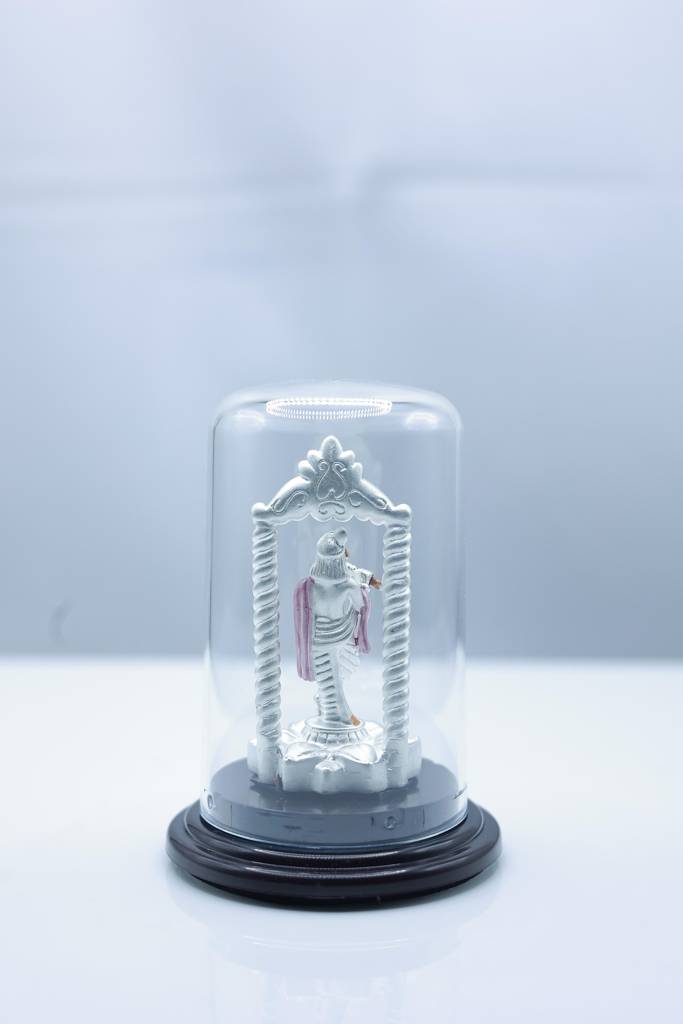 SRI SUGAN SILVER999 Pure Silver Lord Krishna Idol With Glass Dome Display