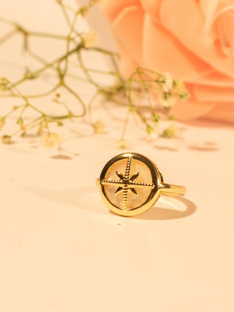 RaasRaniAdjustable Mop Star Ring In 14K Gold Plated Stainless Steel