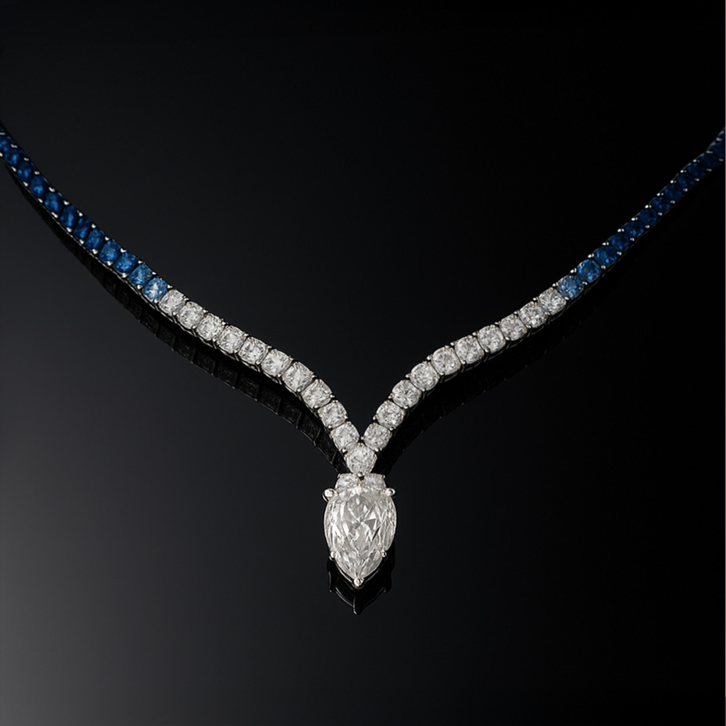 Amalfa Diamond Necklace For Women And Girls : Blue Sapphire Necklace : AMABLUE-NECKLACE