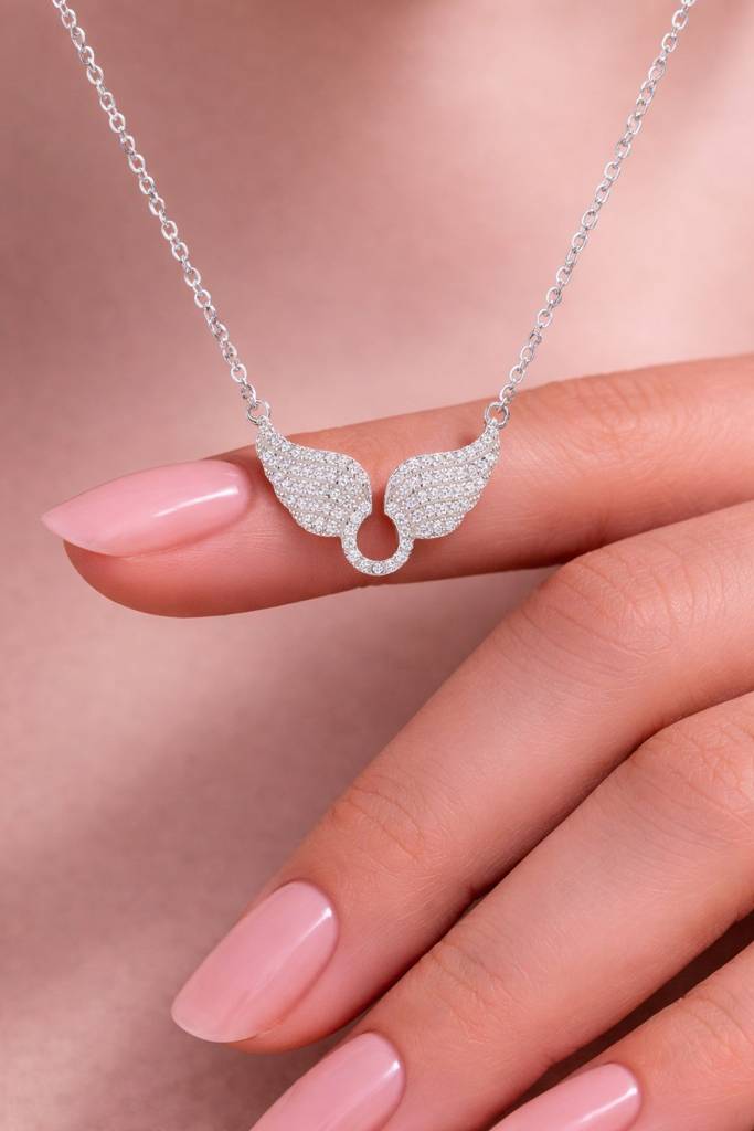 American Diamond Studded Angel Wings Pendant With Chain On Pure 925 Silver. : TP5165