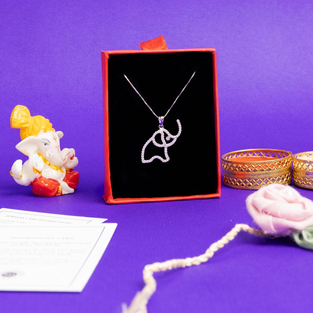 Twenty One JewelsAmerican Diamond Studded Kids Appu Elephant Pendant With Chain On Pure 925 Silver