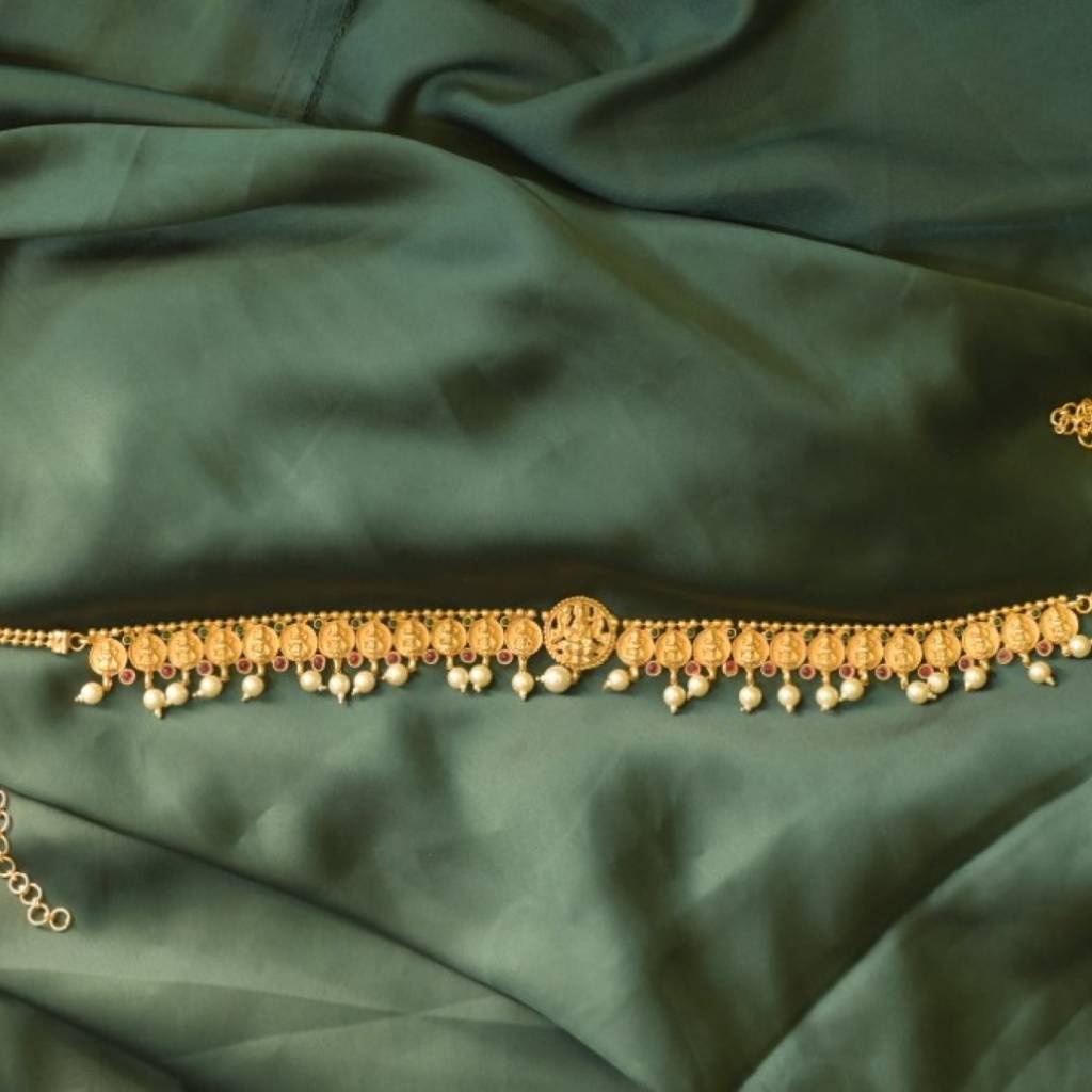 Swan JewelsAnantshri Golden Pearl Drop Temple Kamarbandh