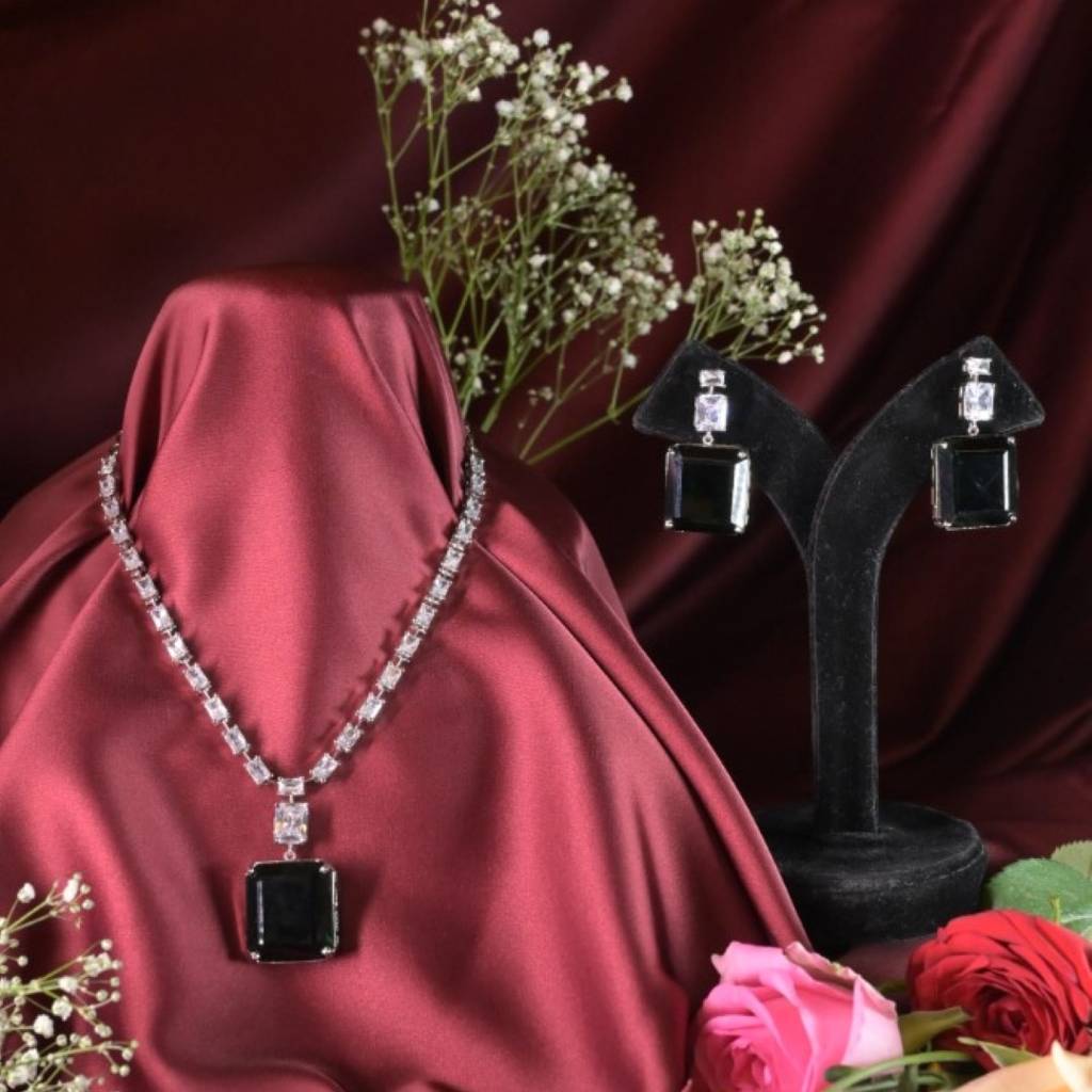 Swan JewelsAnarkali Elegance Square Pendant Diamond Necklace