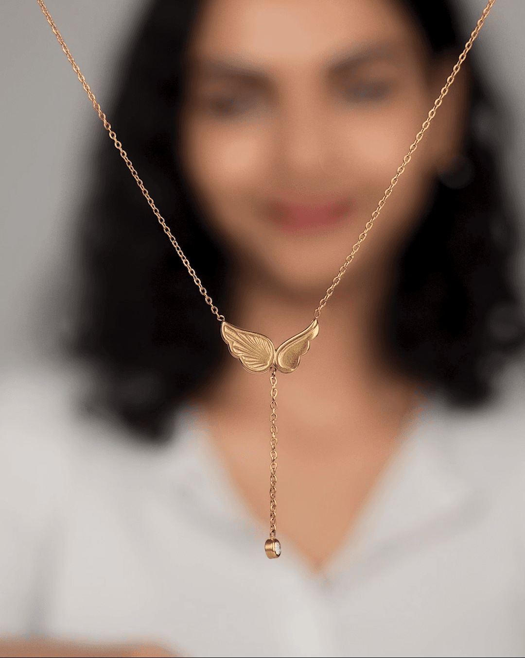 Angel Wing Dangling Diamond Necklace : NK295-G