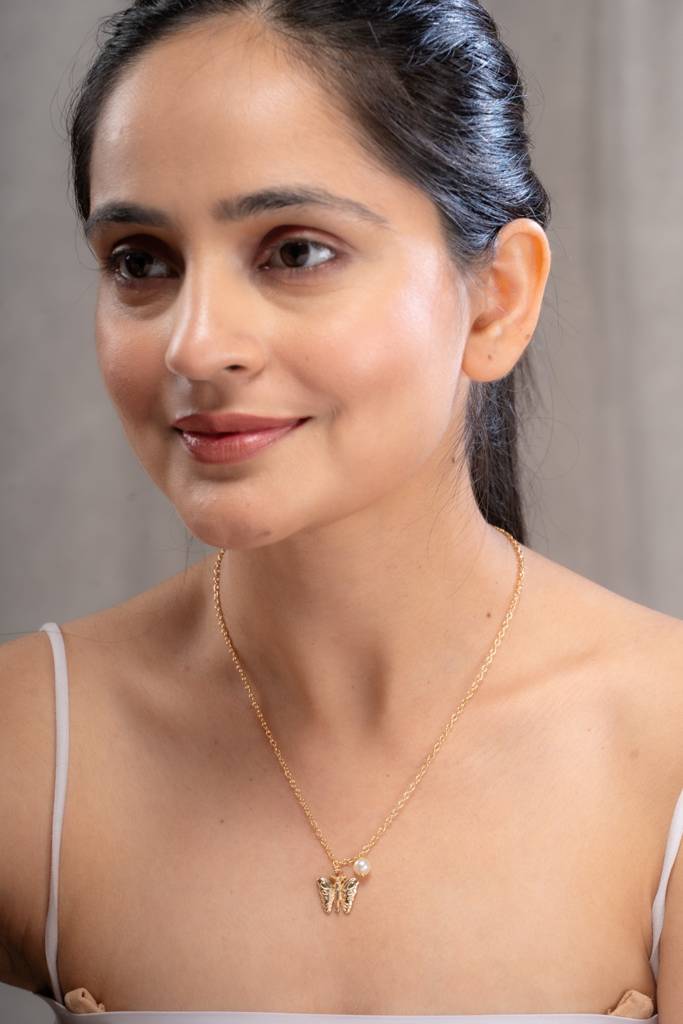 Anti-Tarnish 22Kt Gold-Plated Flutter Pendant Necklace : P03532