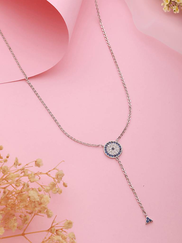 Saraf RS JewelleryAnti-Tarnish Silver Plated Ad Studded Delicate Dangling Evil Eye Necklace