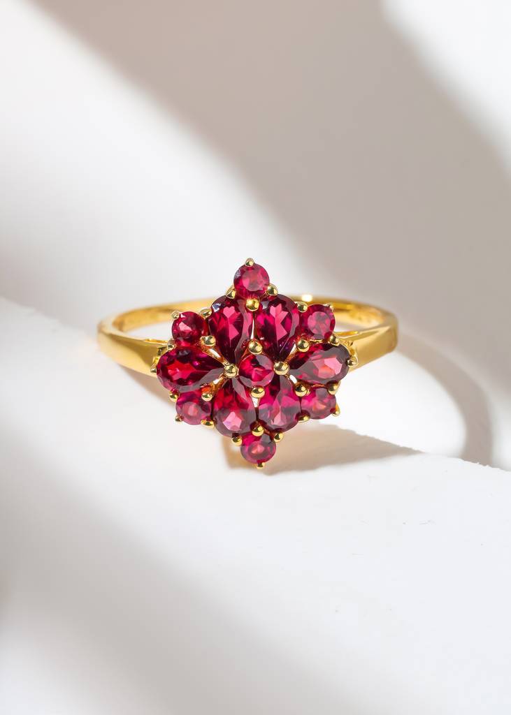 Yo TreasureAttracts Abundance And Prosperity - 18K Gold Plated Over Silver Rhodolite Garnet Ring