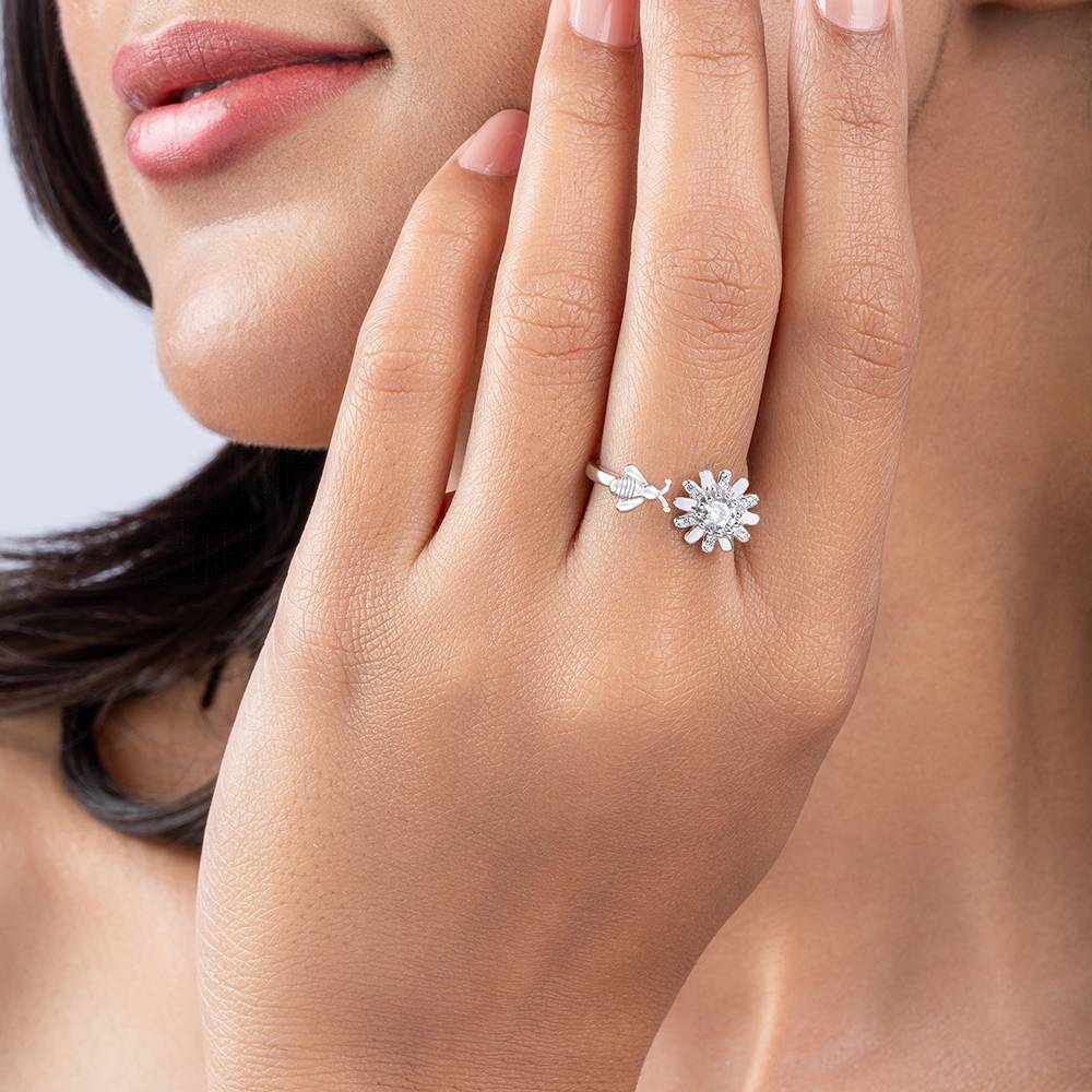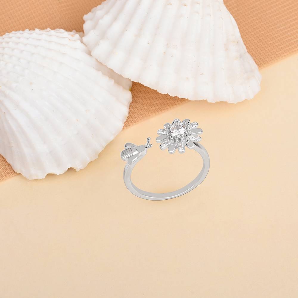 Touch925Bloom & Bee Ring In Silver Color (Adjustable)