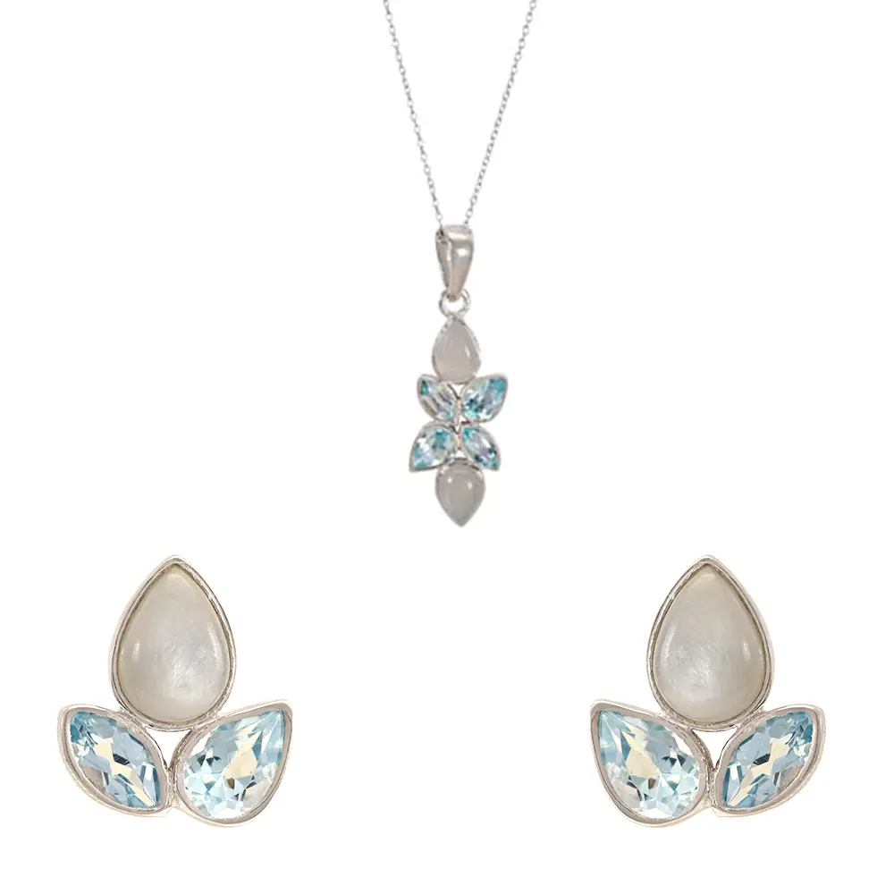 Blue Topaz & Grey Moonstone 925 Sterling Silver Pendant Set : JCPES-197