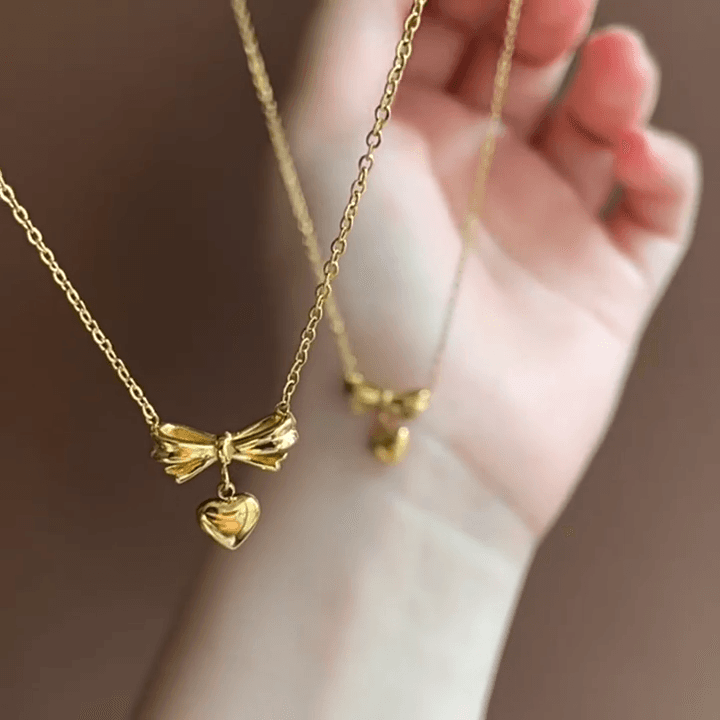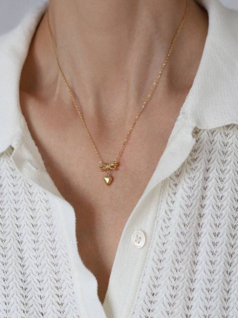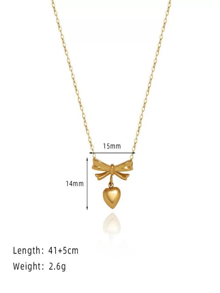 AQUASTREETBow Heart Pendant Necklace 18K Gold Plated Waterproof Anti-Tarnish (16 Inches)