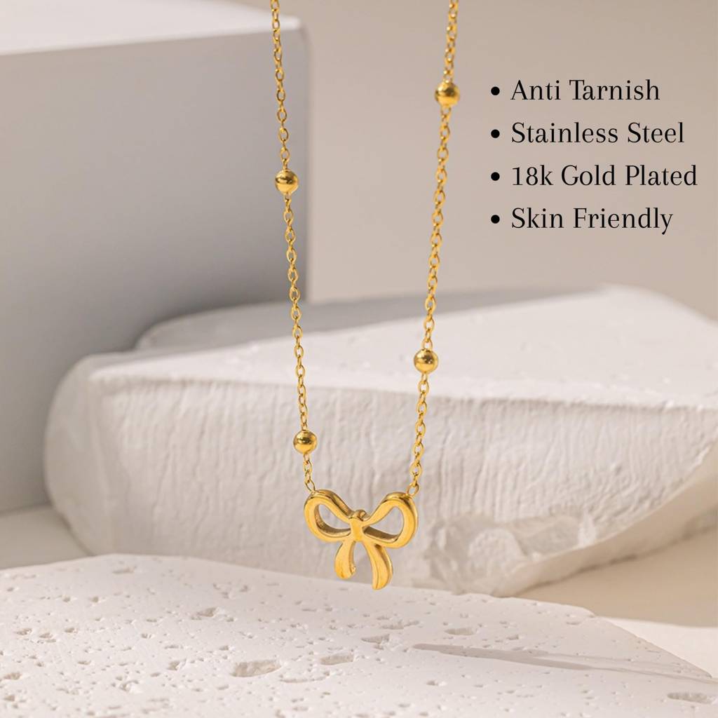 Bow With Bead Chain Necklace : NC_SS_Bow_Gld