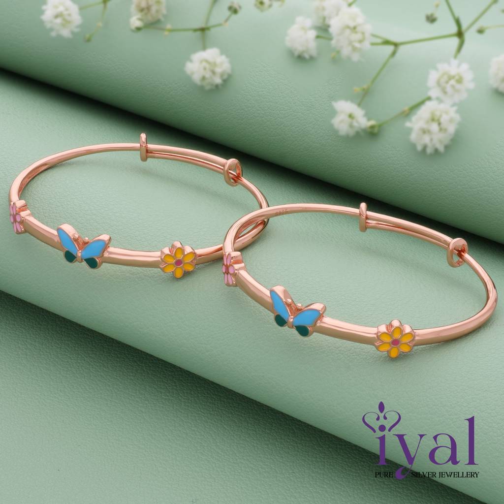 IyalButterfly Charm 18K Rose Gold Polish 925 Silver Kid Bangle(Pair) (Adjustable)