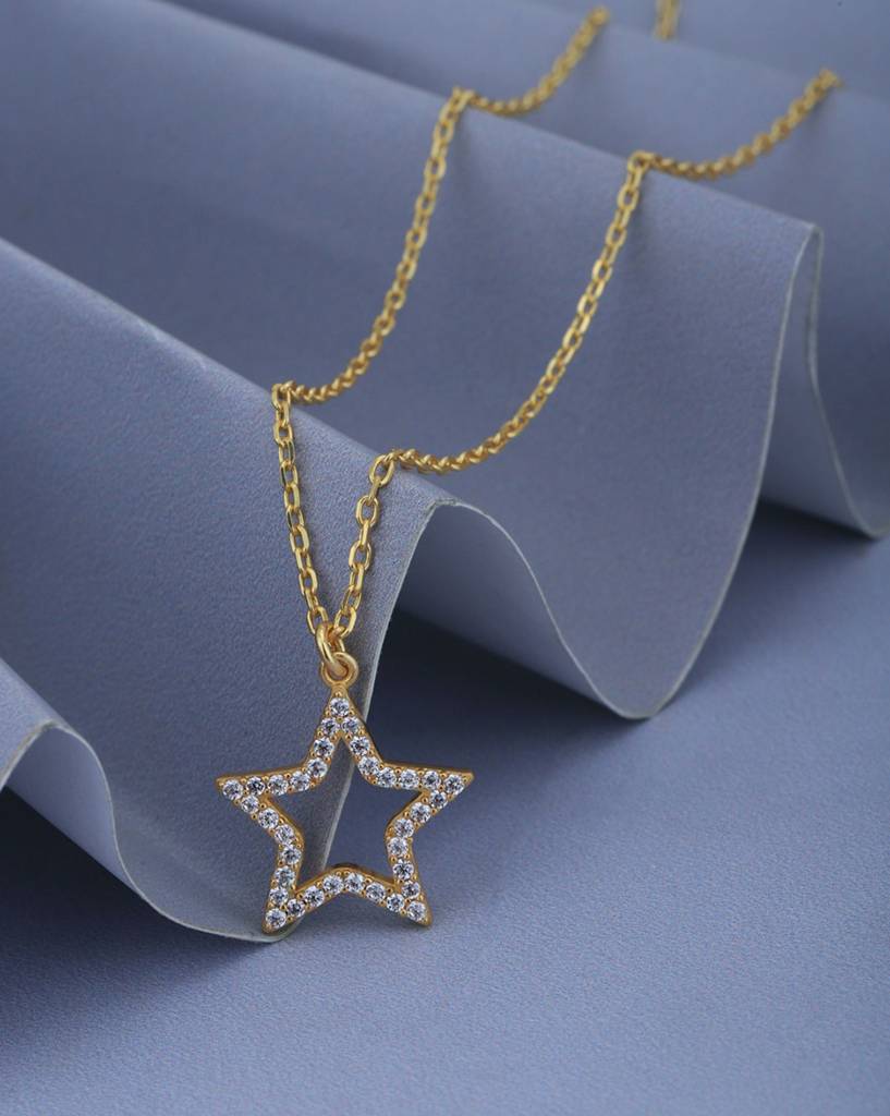 Carlton London 18Kt Gold-Plated Star Shaped Cz Pendant With Chain : FJN4918