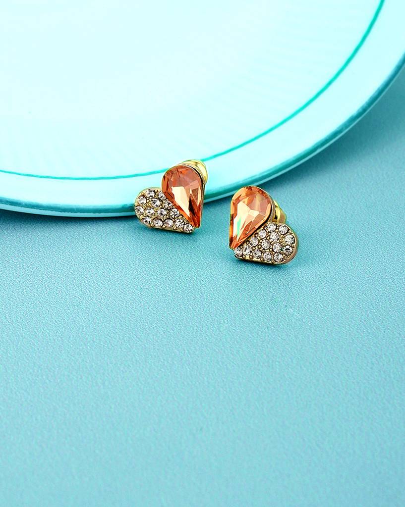 Carlton London Gold-Plated Cz Studded Heart Shaped Studs Earrings : FJE4377