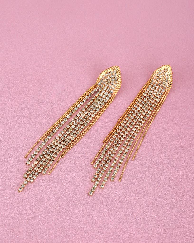 Carlton London Women Gold-Plated Cz Studded Tassel Drop Earrings : FJE4402