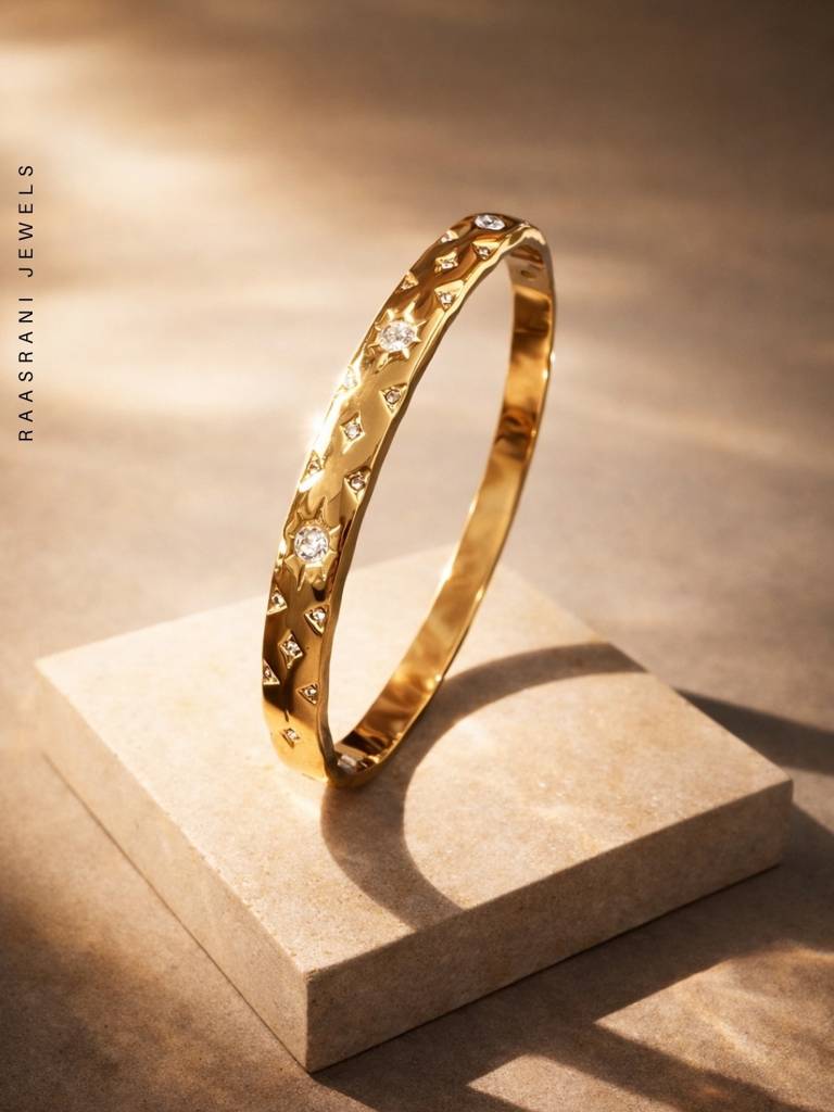 RaasRaniCeleste Texture Gold Bracelet With Cz | Anti-Tarnish Everyday Wear (Size 2.6)