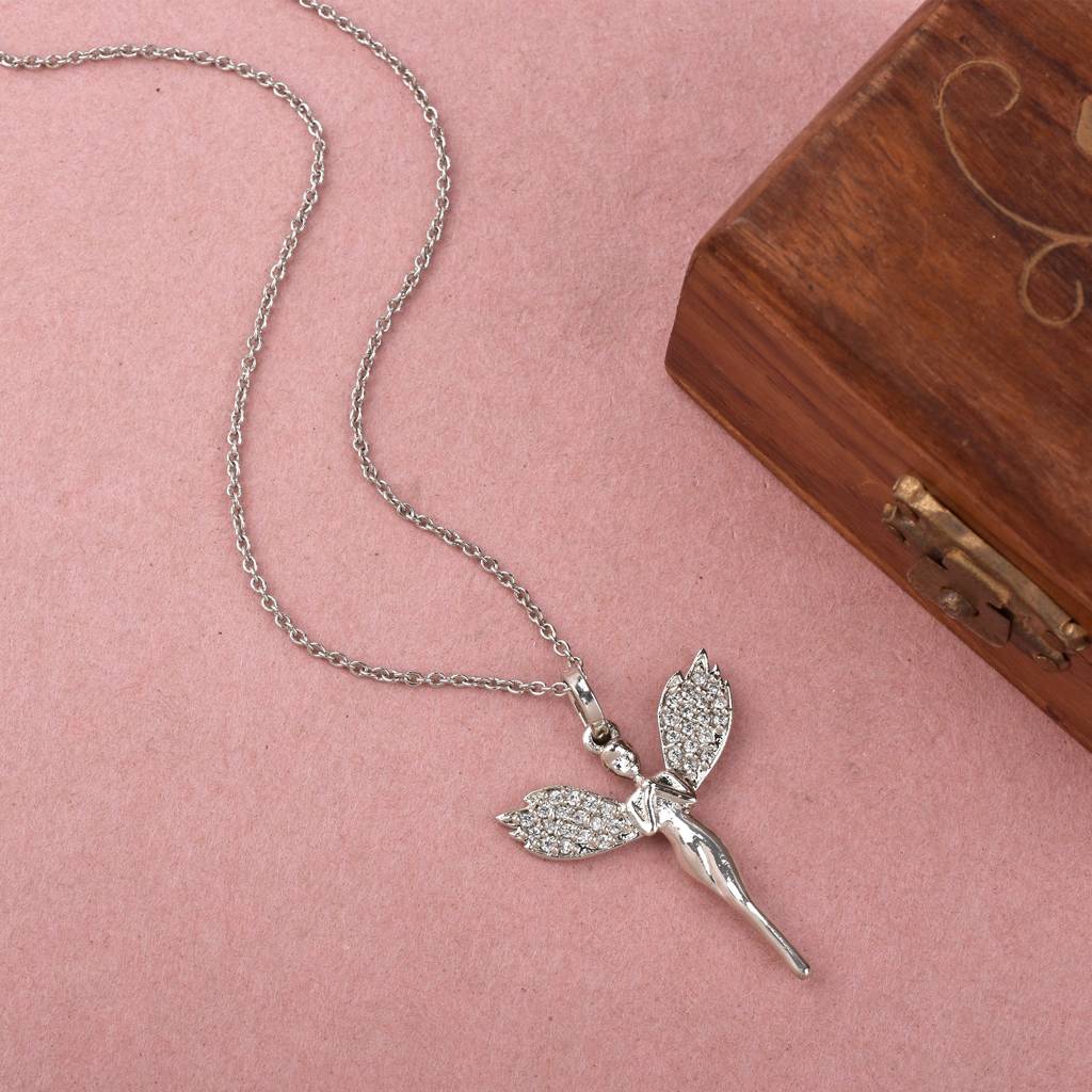 Celestial Grace Silver Angel Pendant With Chain : SIPENWHCZ25