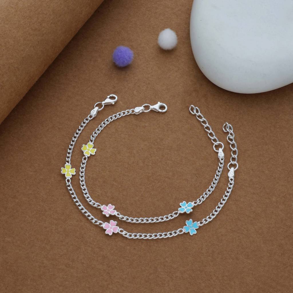 IyalColourful Blossom 925 Silver Kids Anklet (3-5 Yrs) (3-5 Yrs)