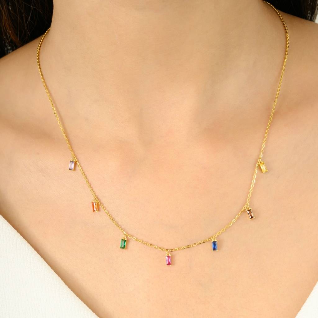 Colourful Dainty Cz Diamond Charm Necklace In 925 Silver : NFL62