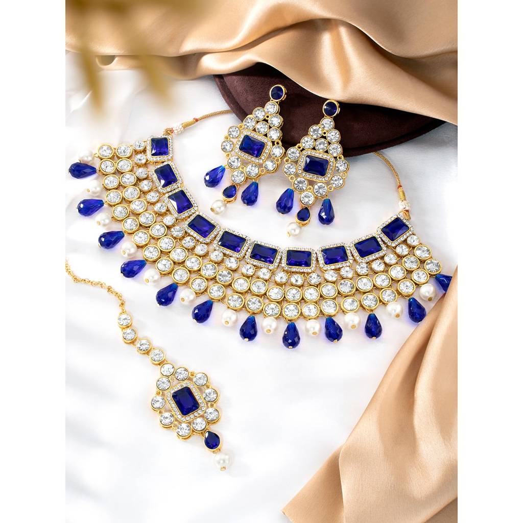 Crystal Choker Necklace With Maang Tikka Earrings Indian Traditional Bridal Wedding Jewellery Set For Women Girls- : PF25N708B