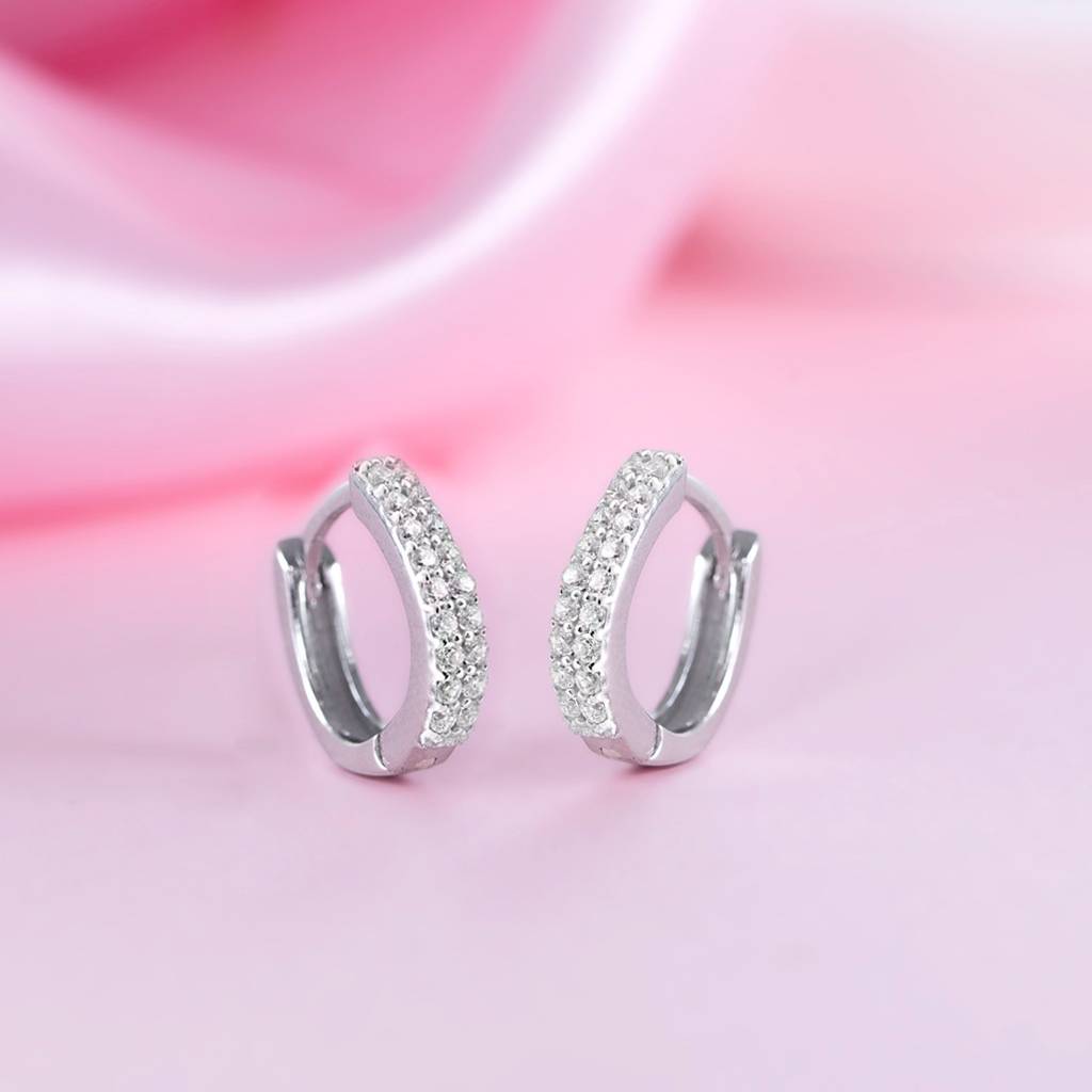 Crystal Pavã© Hug Rhodium-Plated 925 Silver Micro-Hoop Earring : EAR-20993-R