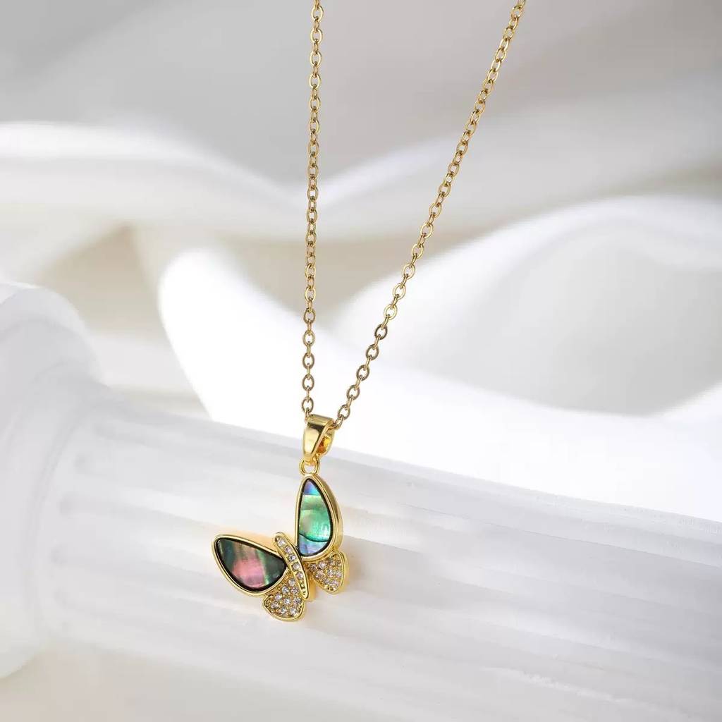 Cute Butterfly Pendant With Opal N Americian Diamond Attach With Anti Tarnish Gold Plated Chain : 118358