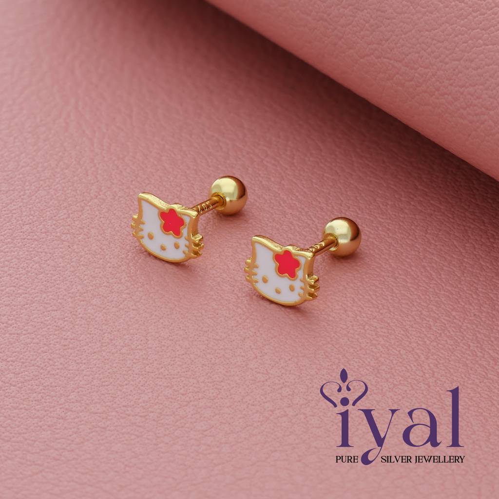 IyalCute Hello Kitty 14K Gold Polish 925 Silver Stud For Kids(2+ Yrs)