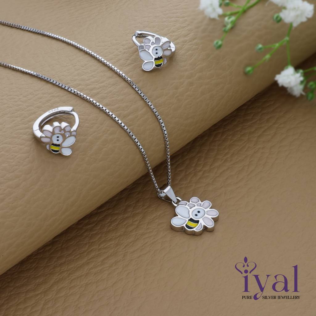 IyalCute Honey Bee 925 Silver Kids Chain Pendent Set(3+ Yrs)