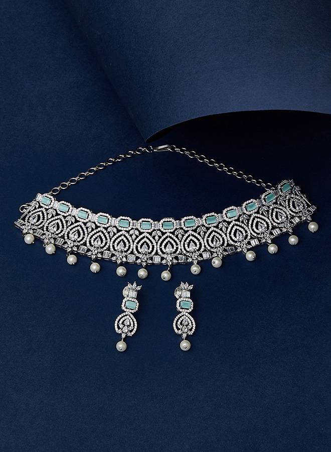 Cz Elegance Pearls And Gems Necklace Set : 8905124459227