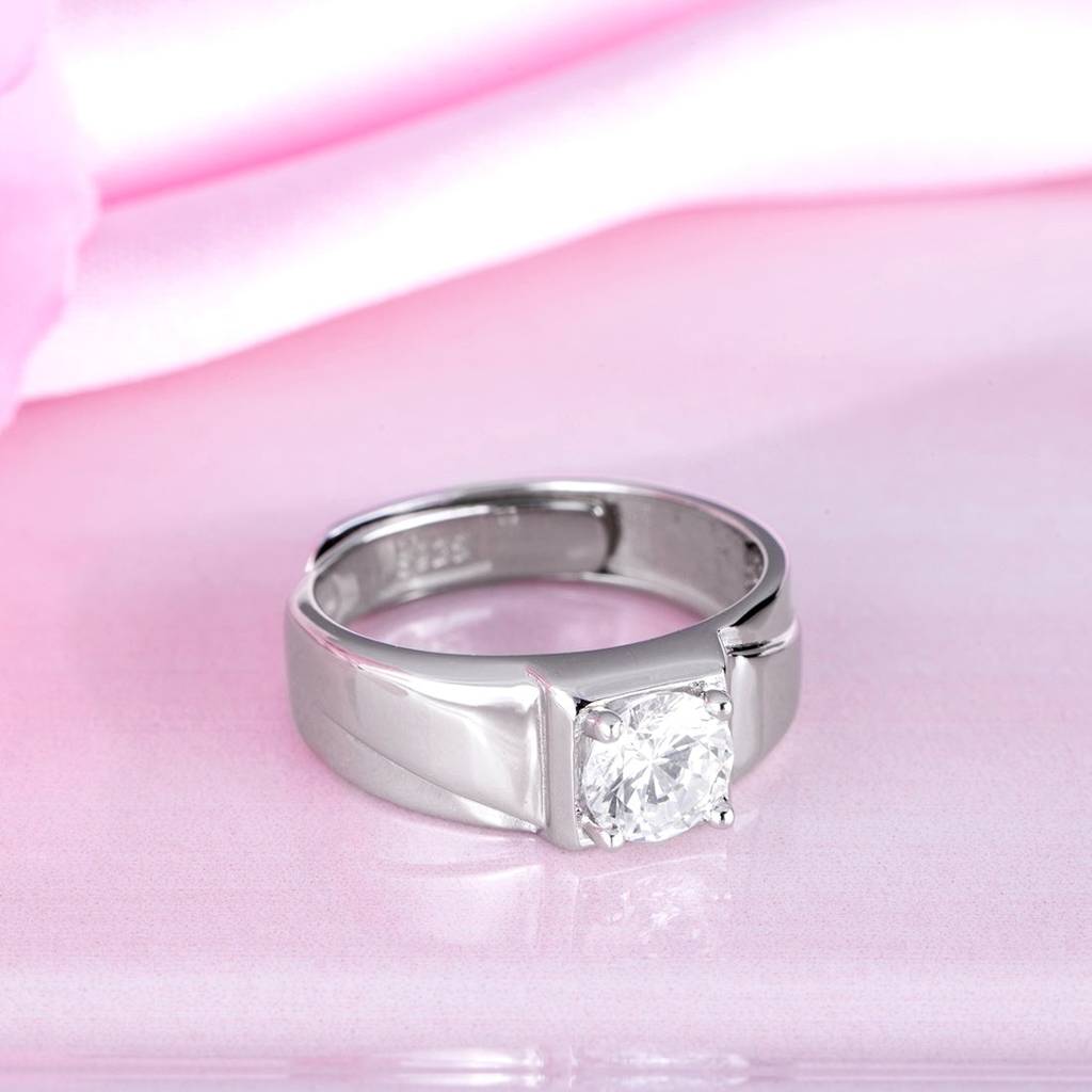 Cz Solitaire 925 Sterling Silver Ring For Him (Adjustable) : RNG-40066