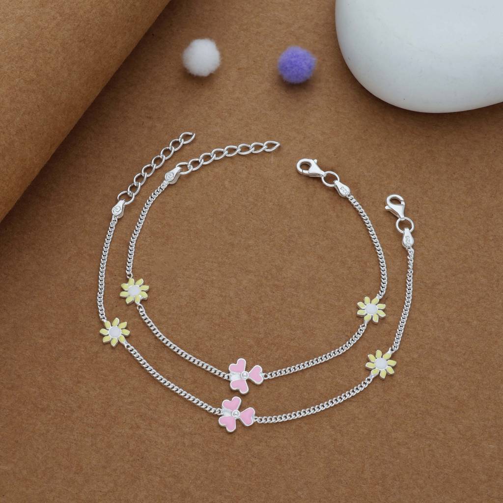IyalDaisy & Butterfly Charm 925 Silver Kids Anklet (4-6 Yrs) (4-6 Yrs)