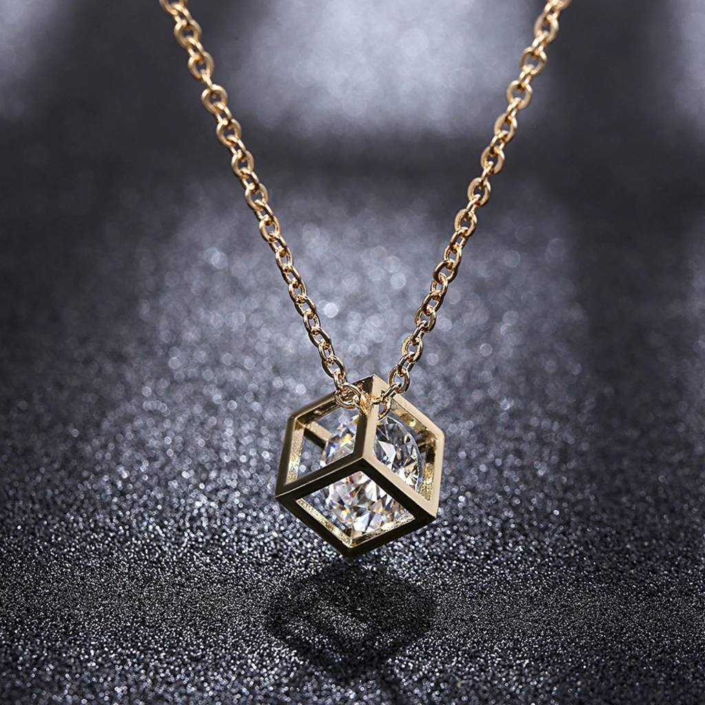 Diamond Cube Pendant Necklace : NC_SS_CubeDimnd_gld