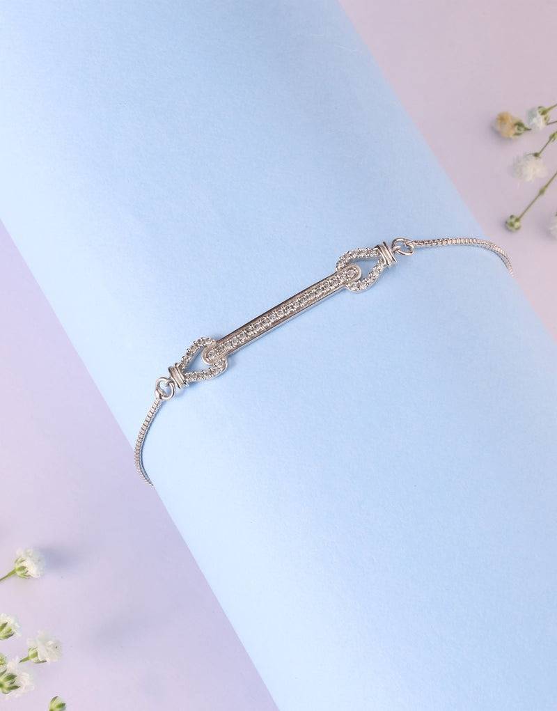 House of DianaDual Arrow Adjustable Sterling Silver Cz Bracelet (7.3 Inches)