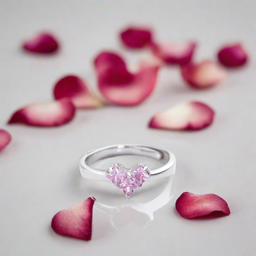 ZavyaDusty Pink Heart 925 Sterling Silver Ring For Women (Adjustable)
