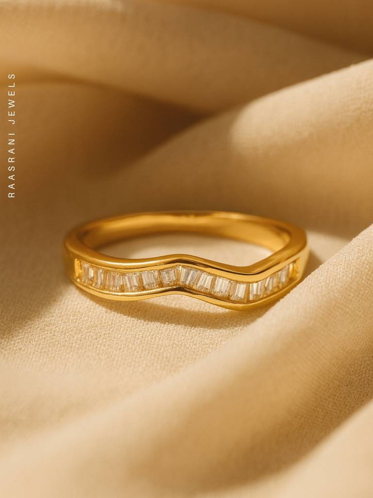 RaasRaniElegant Zigzag Gold Ring Stainless Steel, Ad Studded, Size 7 (Size 7)