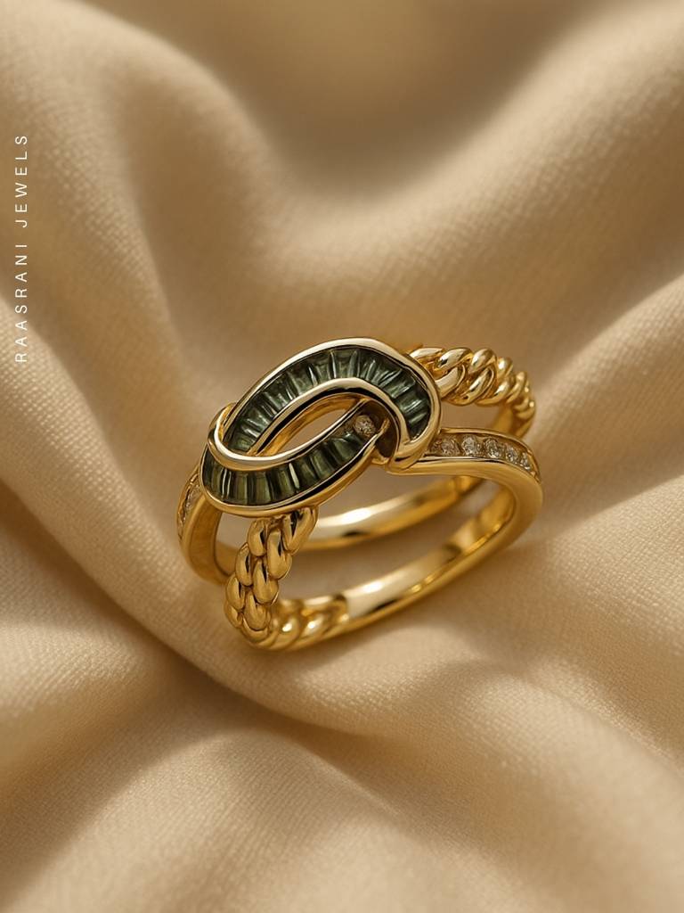 RaasRaniEmerald Criss Cross Adjustable Ring 18K Gold Plated Stainless Steel