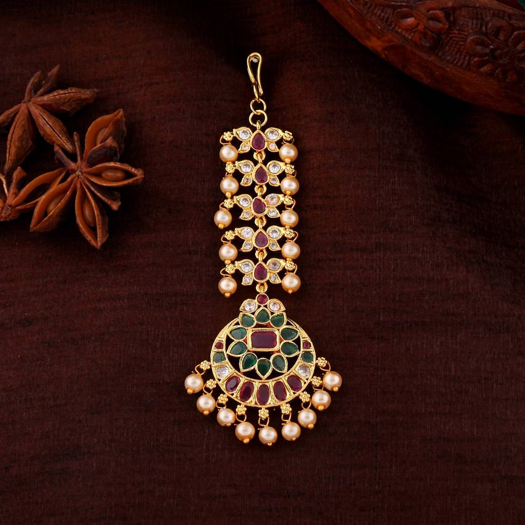 Estele Gold Plated Fascinating Flower Designer Maang Tikka With Pearls For Women : AD-MT-003-IGTIKAA
